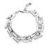 Браслет выполнен из металла с покрытием серебром и золотом. Конструкция представляет собой массивные соединенные звенья. Длина регулируется с помощью надежной застежки, обеспечивая удобную посадку на запястье. Комбинация позолоты и посеребрения создает стильный контраст и делает браслет универсальным для разных образов.